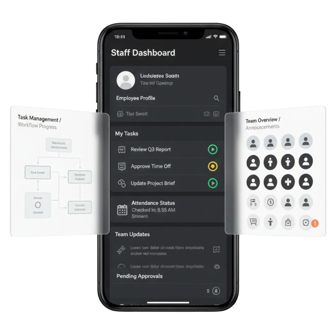 Support internal operations and workforce management with mobile tools. Improve communication, task tracking, and operational efficiency.